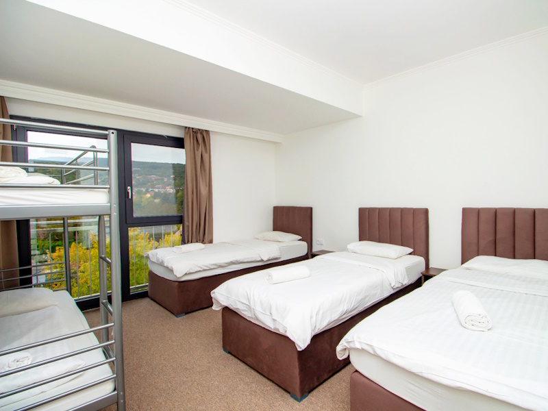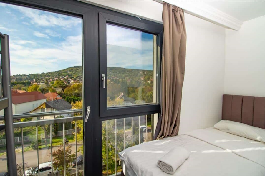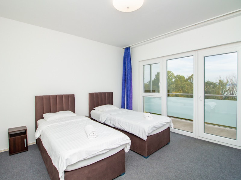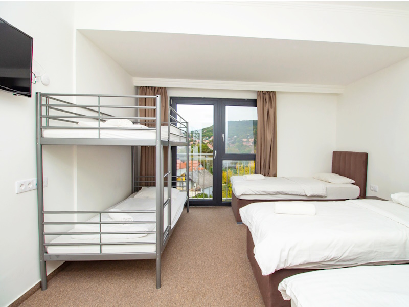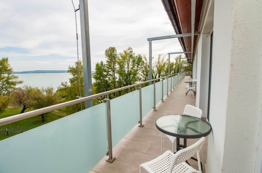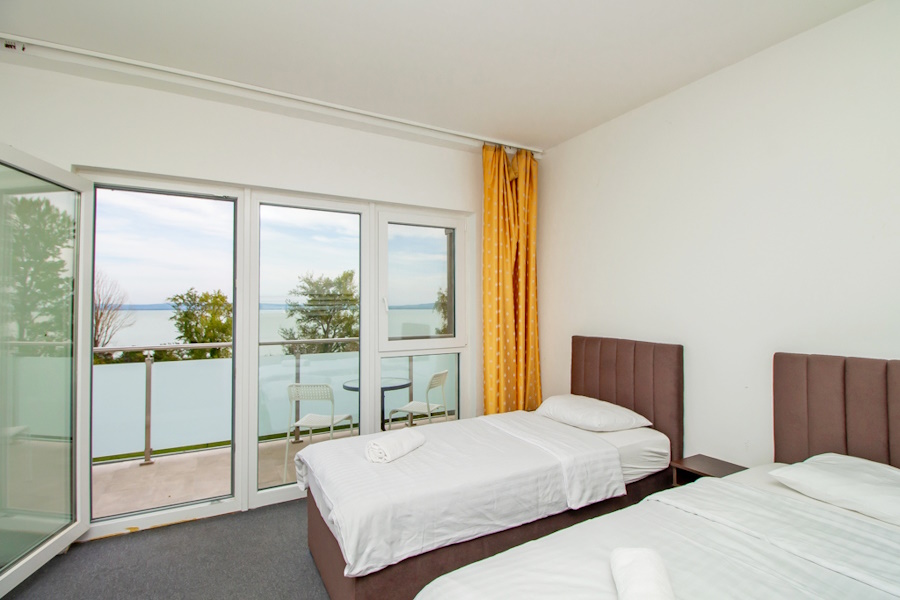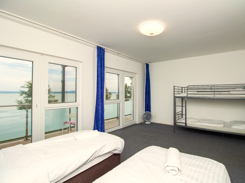 Szobák: A szálláson négy szinten 5 ágyas felújított valamint balatoni panorámás szintén 5 ágyas szobák találhatóak, illetve 4 db 8 fős nagyszoba. Hűtők folyosón szintenként.