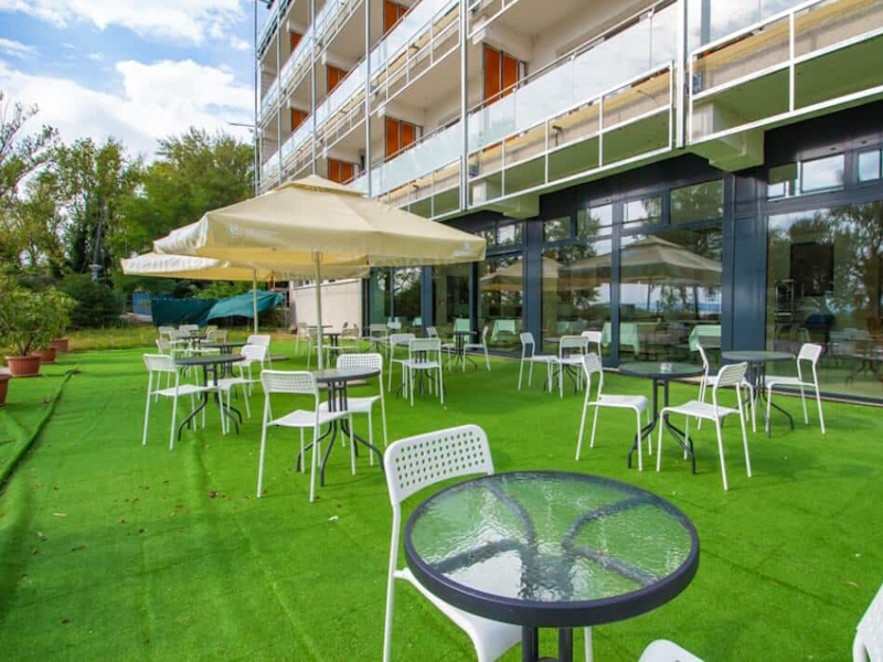 Fekvése: Révfülöpi szálló hatalmas , közvetlen vízparti zöldterülettel rendelkezik, nyári táborok, edzőtáborok részére ideális környezet, ahol a napozni, pihenni, sportolni vágyók homokos strandröplabda pályát is használhatnak. A nagy udvar kiváló helyet biztosít szabadtéri edzéseknek, a közelben labdarúgópálya és kisméretű tornaterem is található. Az aulában büfé, billiárd, csocsó, darts, léghoki, tv valamint egy kisméretű konferencia terem is található.